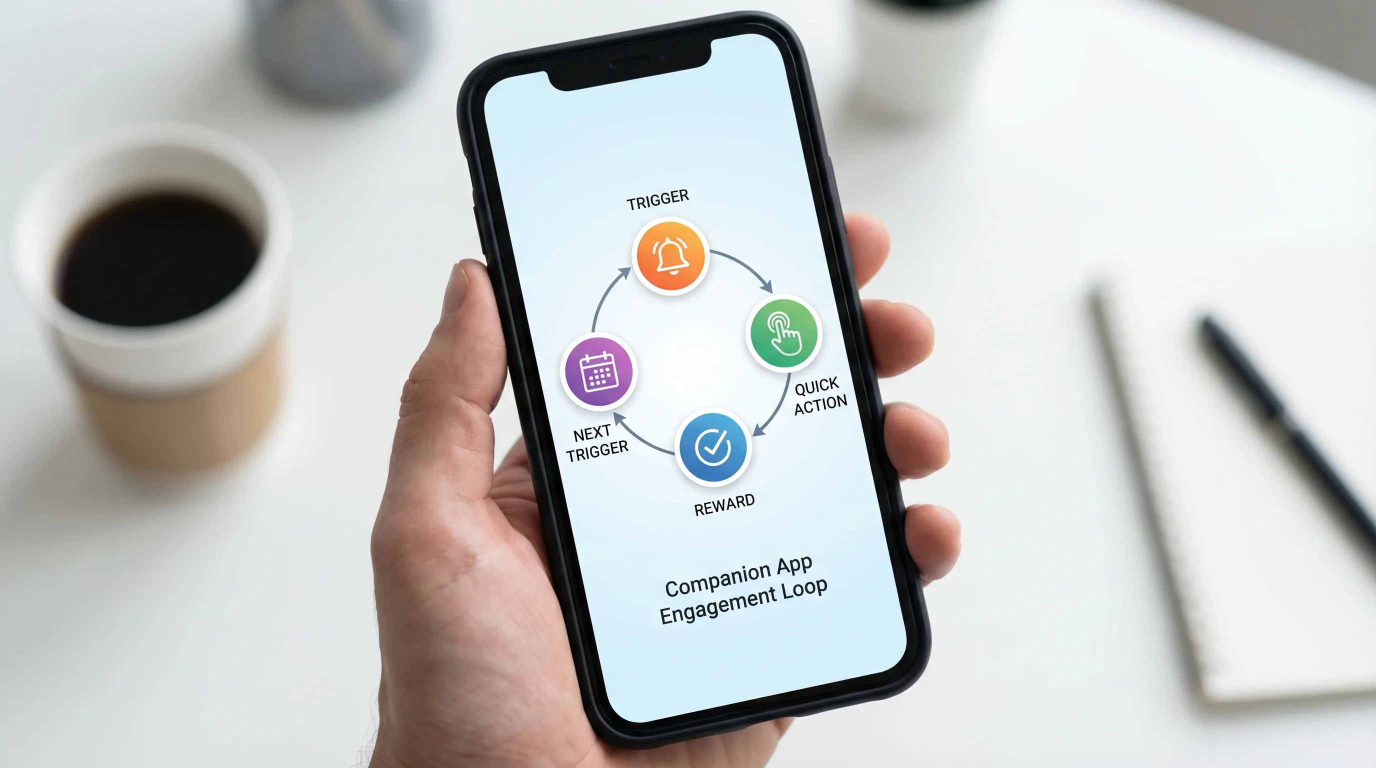 Companion apps win by being opened repeatedly, so design around an engagement loop, not a roadmap.