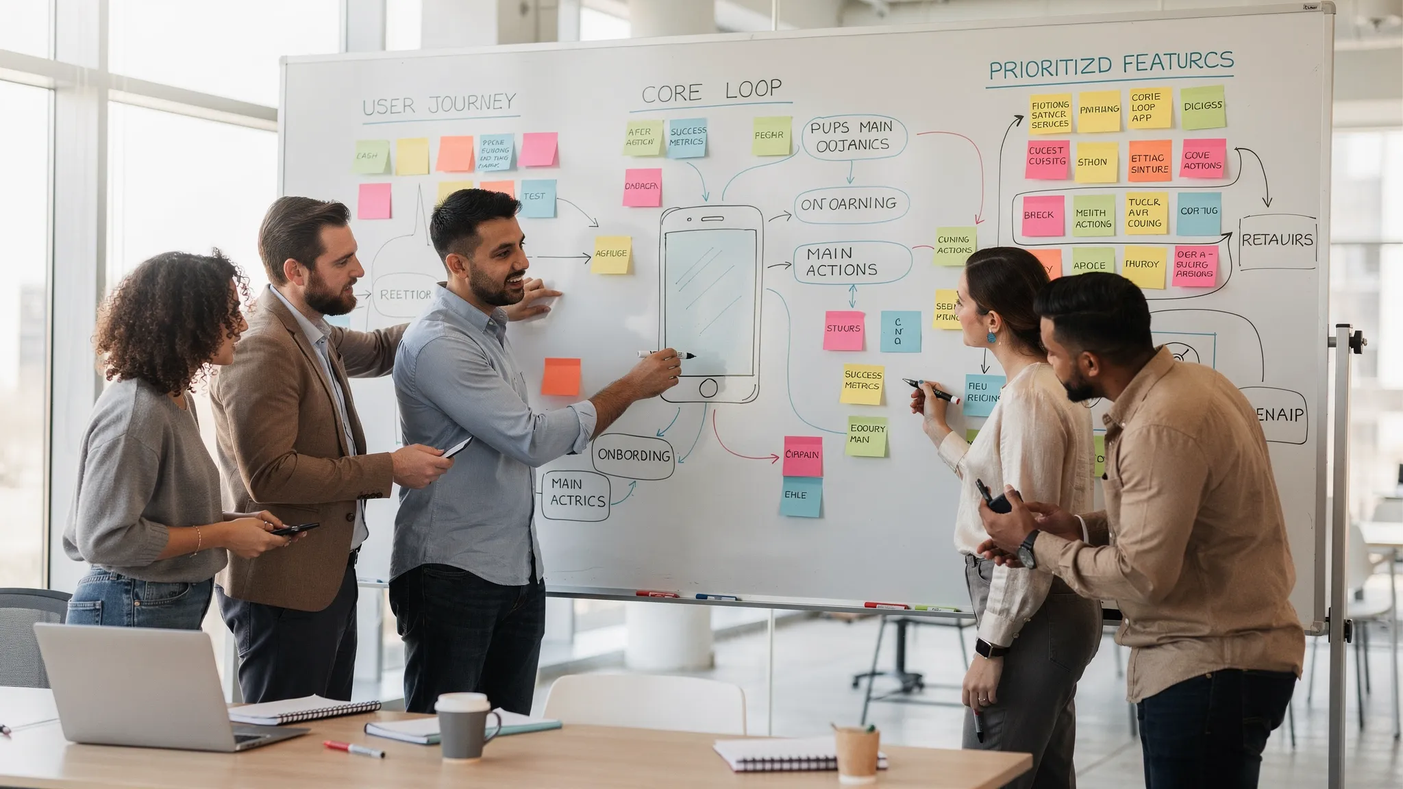 For a consumer wellness app, the loop might be: open the app, log a symptom, receive a personalized recommendation, act on it, return tomorrow. For a B2B field operations app, it might be: receive a job, complete the checklist, capture proof, sync status to the backend, reduce manual admin work. For a marketplace, it might be: post supply, match demand, complete transaction, confirm trust.
