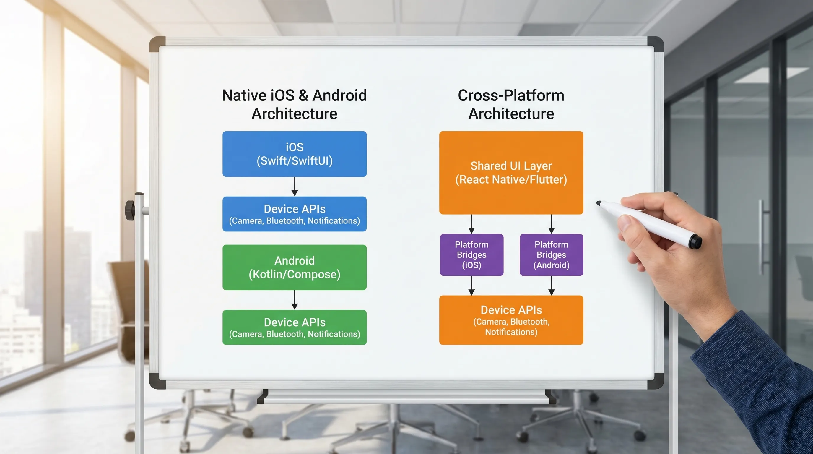 - Cross-platform depends on a framework’s abstractions and its plugin ecosystem, and it often requires custom native work at the edges.